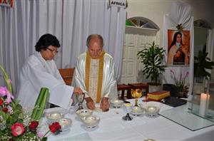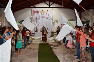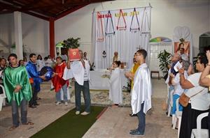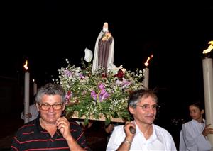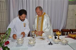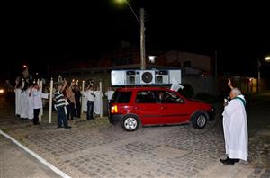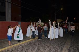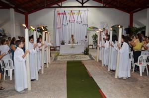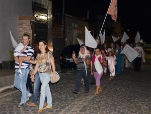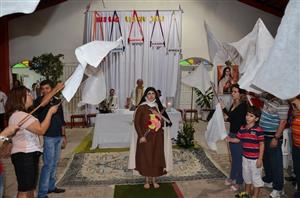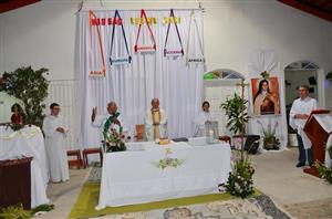A Comunidade Santa Teresinha encerrou sua festa neste domingo, dia 19-10-14, com uma bonita procissão pelas ruas do bairro, culminando com a Santa Missa e ao final, o convívio, onde foram distribuídos bolo e refrigerante pra todos. Após nove noites de novena nas ruas e o tríduo, a festa foi concluída com uma bela Missa Campal, presidida por Padre Tomás. Diácono Salinésio participou ativamente da procissão, exortando a todos para a missão. Parabéns para a comunidade e muito obrigado a todos que colaboraram.